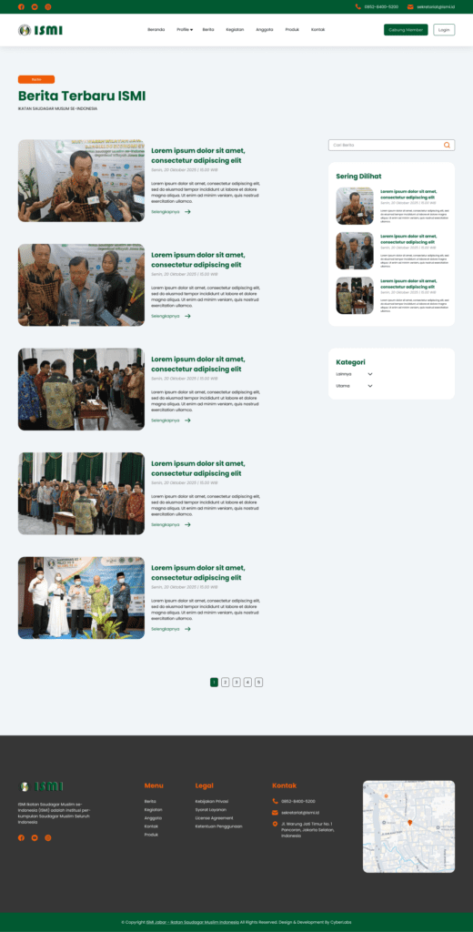 Website ISMI Jabar (Ikatan Saudagar Muslim se Indonesia) yang menampilkan informasi lengkap mengenai profile, kegiatan dan juga proses pendaftaran menjadi anggota komunitas